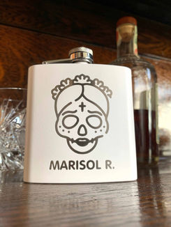 La licorera de 6 oz viene en acabado negro mate, rosa o acero inoxidable. La licorera se puede grabar a láser para crear una imagen permanente y llamativa.