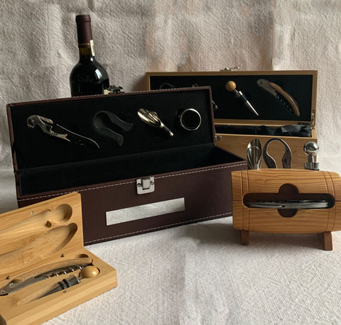 Caja para botella de vino hecha de bambú macizo, esta caja de presentación tiene capacidad para 1 botella de vino y se incluye una pieza para separar las herramientas de la botella. Las herramientas encajan perfectamente en la espuma de color carbón e incluyen sacacorchos, cortacápsulas, tapón y aireador. La caja tiene herrajes plateados y cierre para mantener la tapa bien cerrada.